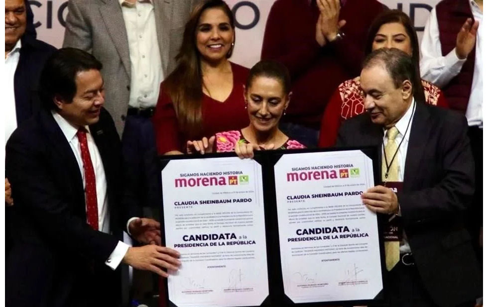 Cd. de México.- A 25 días de que el Instituto Nacional Electoral (INE) abra el registro de presidenciables, Claudia Sheinbaum tomó protesta como candidata de Morena, PT y PVEM a la Presidencia de la República.