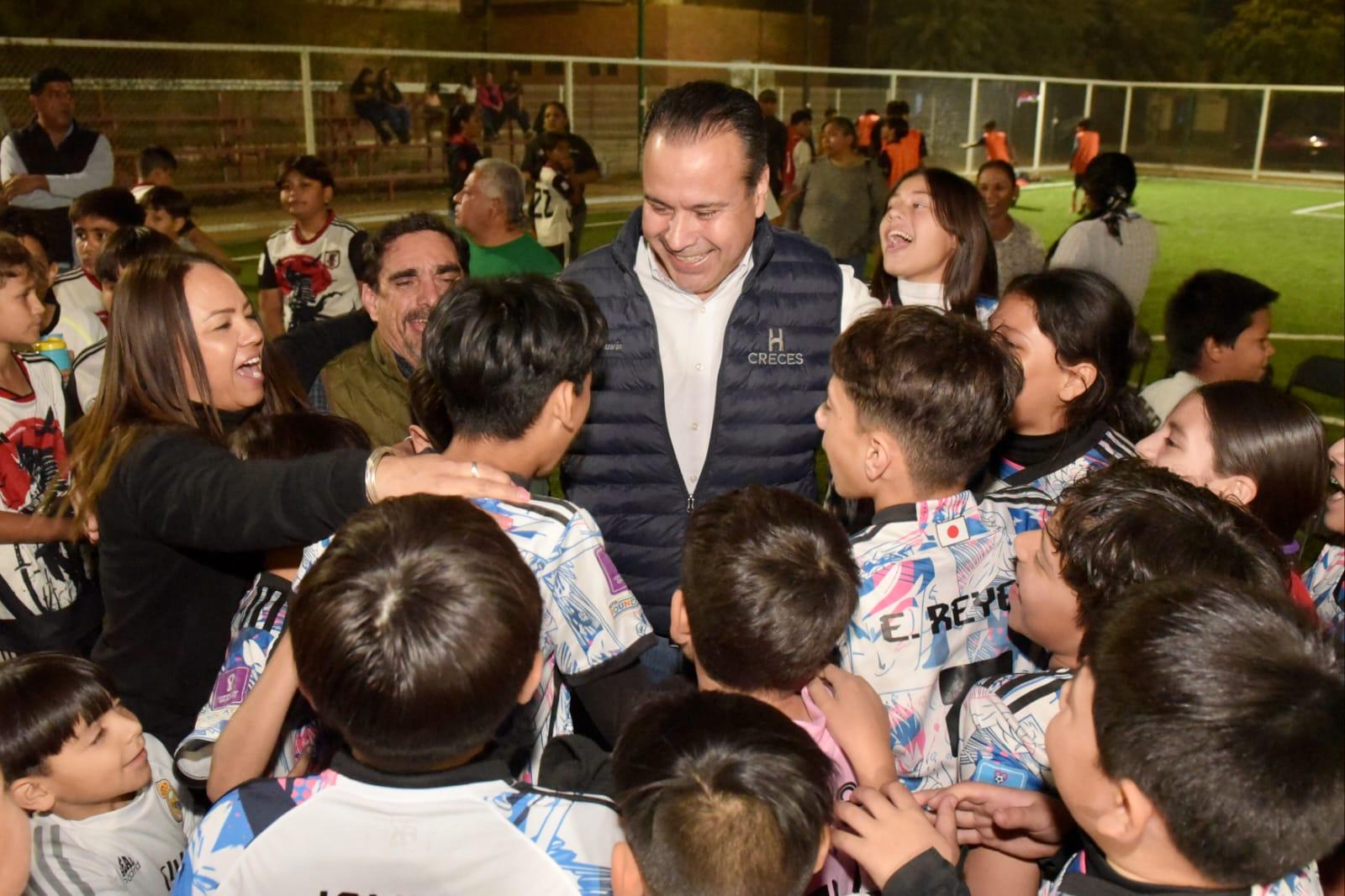 En la rehabilitación del campo deportivo se invierten 861 mil pesos como donativo de la empresa Fanosa y propiciará la implementación del programa CRECES en Deporte que fomenta la actividad física de niñas, niños y adolescentes en las colonias.
