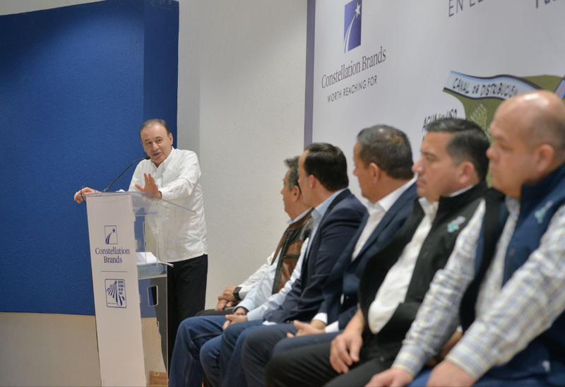 El mandatario estatal destacó la colaboración entre el Distrito de Riego del Río Yaqui y Constellation Brands, sobre todo que esta empresa cervecera ratifica su responsabilidad social que tiene para Cajeme, pues con estos seis cárcamos se generarán 42 mil jornales de trabajo generando un beneficio social el sur del estado.