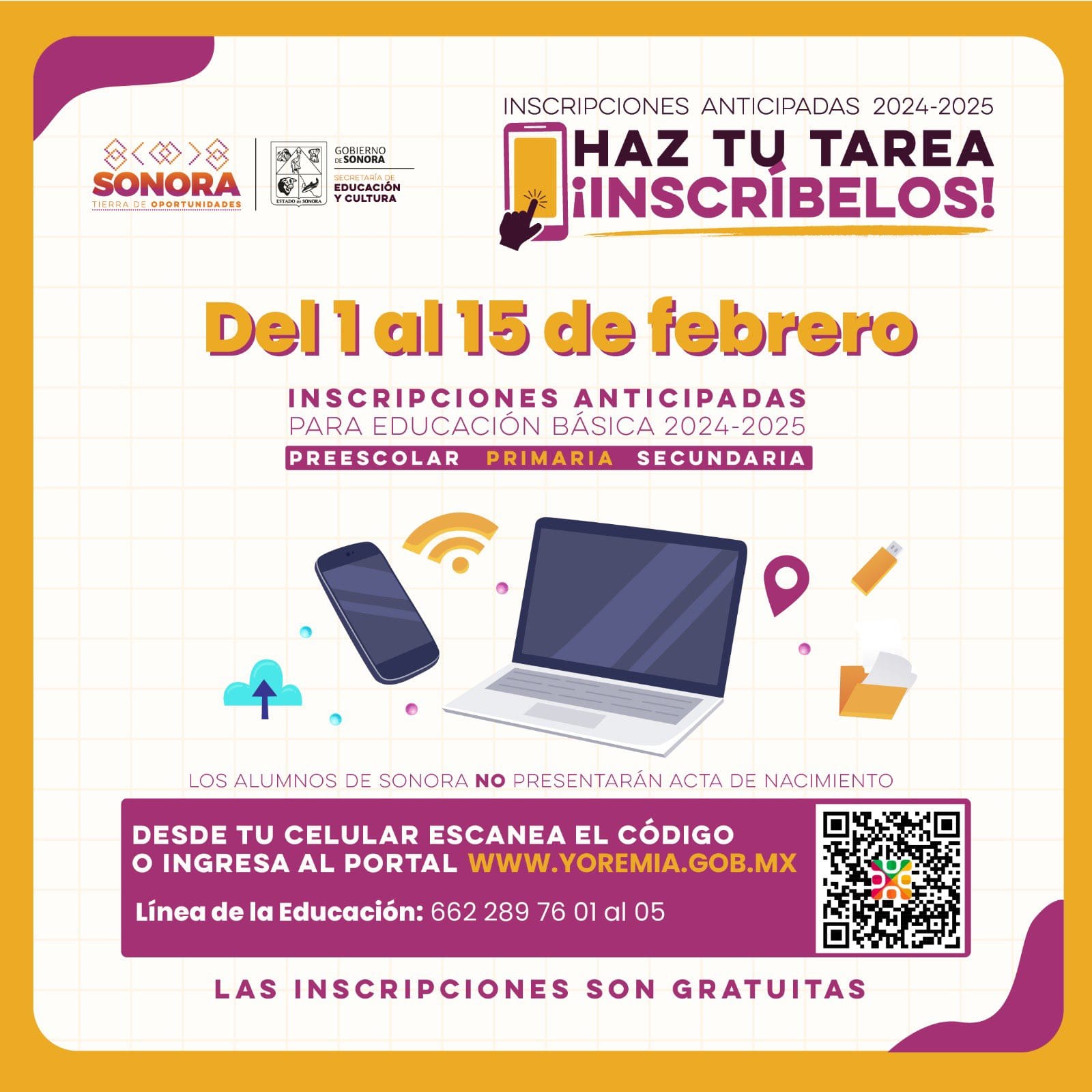 Hermosillo, Sonora; 6 de febrero de 2024.- Alrededor del 60% del alumnado que se estima ingresará a primero de primaria y primero de secundaria ya fue inscrito en línea a través del portal www.yoremia.gob.mx, informó Aarón Grageda Bustamante.