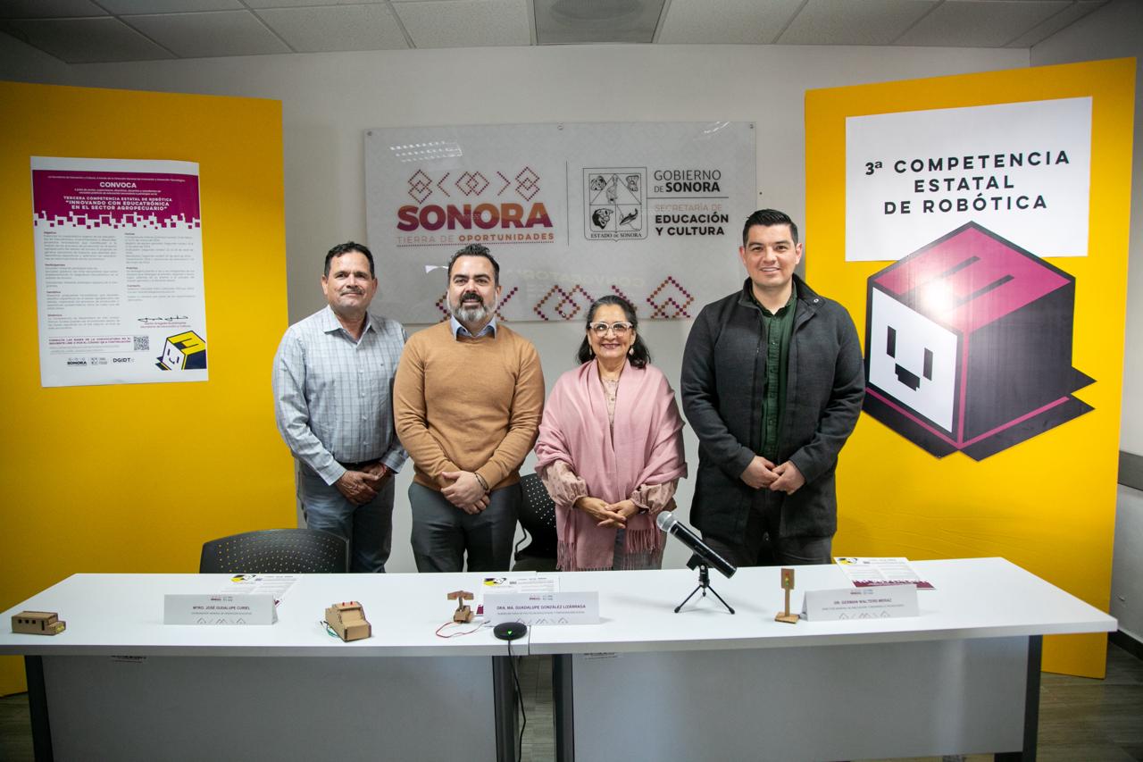 Hermosillo, Sonora; 15 de febrero de 2024.- Con el objetivo de potenciar la creatividad y la visión innovadora del alumnado de escuelas secundarias públicas donde se imparte la asignatura de Educatrónica, la Secretaría de Educación y Cultura (SEC) presentó la convocatoria de la Tercera Competencia Estatal de Robótica “Innovando con Educatrónica en el Sector Agropecuario”.