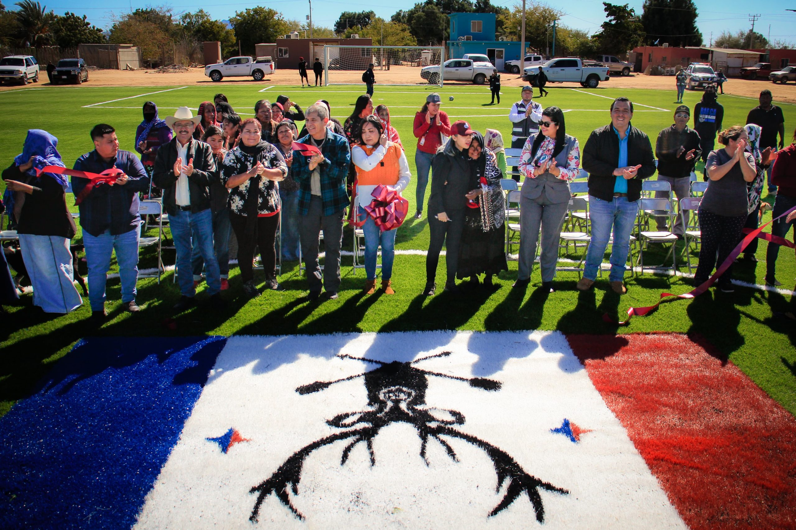 Desemboque de los Seris, Pitiquito, Sonora; 17 de febrero del 2024.- En seguimiento a los trabajos del Plan de Justicia del Pueblo Comca'ac, el Gobierno de Sonora a través de la Secretaría de Desarrollo Social (Sedesson), realizó la entrega de la Cancha Deportiva para beneficio de 329 habitantes de la localidad de El Desemboque de los Seris, municipio de Pitiquito.