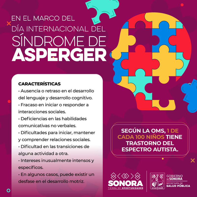 Hermosillo, Sonora; 19 de febrero de 2024.- En el marco del Día Internacional del Síndrome de Asperger, la Secretaría de Salud (SSA), informó a la población que se cuenta con el personal e instalaciones necesarias para la atención de niñas y niños que padecen este trastorno, servicio gratuito para quienes no cuenten con derechohabiencia social.