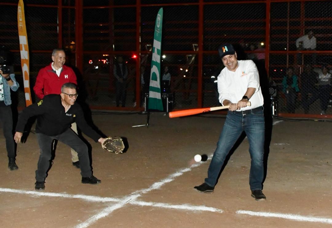 Hermosillo, Sonora; 23 de febrero, 2024.- “Dicen más los hechos que las palabras, las obras dejan más legado que las promesas”, destacó Toño Astiazarán al entregar el campo de béisbol no. 3, denominado René Hurtado Leyva “La Rana”, en la Ciudad Deportiva en que se ha convertido El Cárcamo.