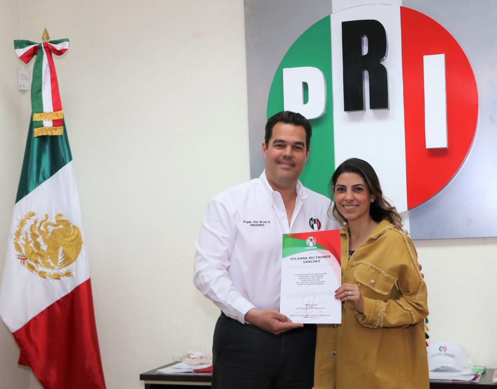 Hermosillo, Sonora. 7 de marzo de 2023. El presidente del Partido Revolucionario Institucional (PRI) en Sonora, Rogelio Díaz Brown, tomó protesta a la senadora Sylvana Beltrones Sánchez como coordinadora de Vinculación Ciudadana y Plataforma Legislativa del Comité Directivo Estatal del partido.