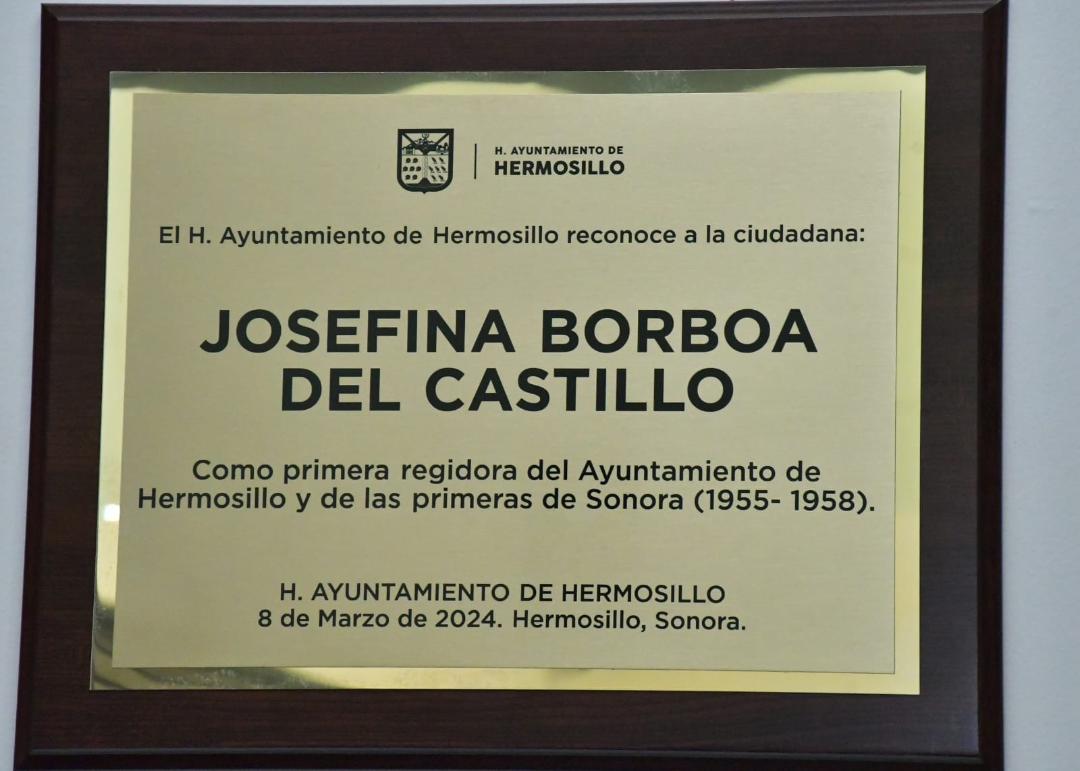 Con la develación de esta placa en la antesala del salón de plenos del Cabildo de Hermosillo se dio respuesta a un exhorto del Congreso del Estado de Sonora del pasado 13 de febrero de 2024, en el sentido de visibilizar a aquellas regidoras que se integraron en las administraciones municipales de 1955 a 1958, pocos años después del reconocimiento de sus derechos políticos.