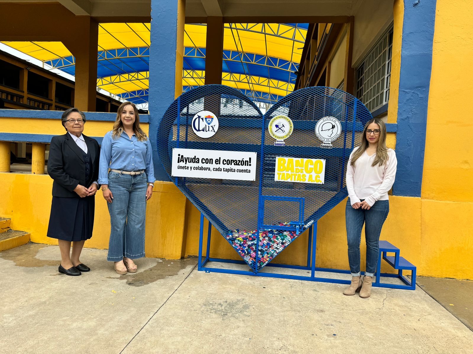 Martha Estrada, al donar al Colegio Lux de Hermosillo un corazón recolector de tapitas, reconoció la labor solidaria y altruista de directivos, docentes, administrativos y sobre todo de madres y padres de familia quienes se suman a esta actividad con causa.