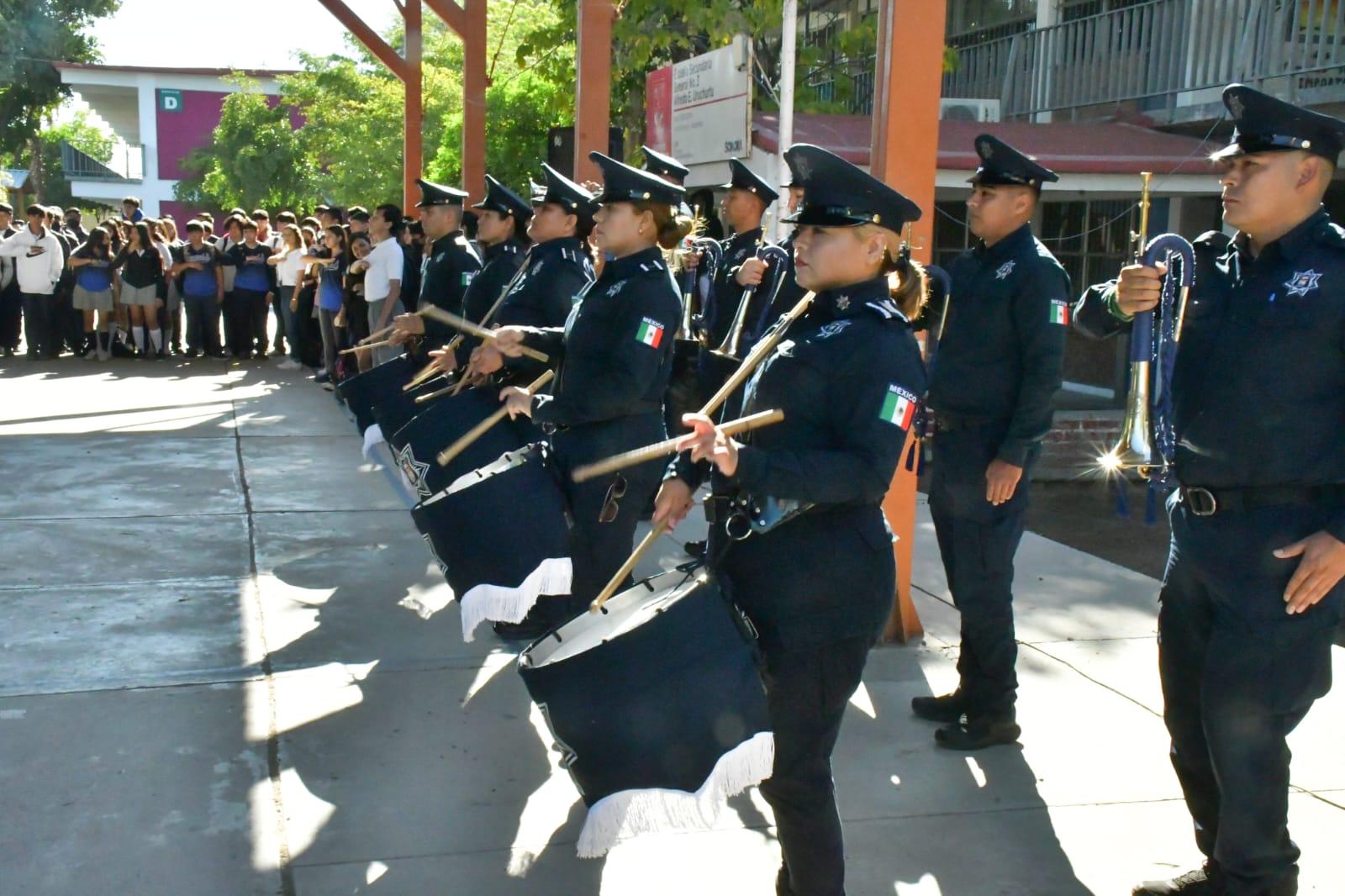 Autoridades del Gobierno Municipal respondieron a la invitación de Yamille Ortiz López, directora del Plantel, de acompañar a las alumnas y alumnos a honrar los símbolos patrios y recibir de ellos un testimonio de agradecimiento por contribuir a un ambiente de seguridad y limpieza en los alrededores de la escuela.