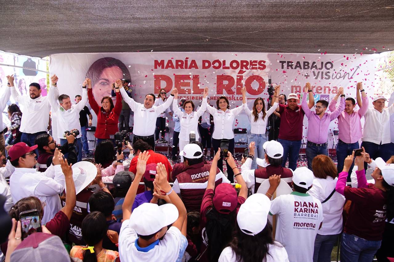 Desde el Poblado Miguel Alemán, durante su sexto arranque de campaña distrital, la abanderada de la candidatura común Sigamos Haciendo Historia en Sonora, María Dolores del Río, hizo mención de los tres compromisos prioritarios para las y los habitantes del Poblado y Bahía Kino, donde reconoció la fortaleza que las mujeres y los hombres de esta comunidad representan para el municipio.