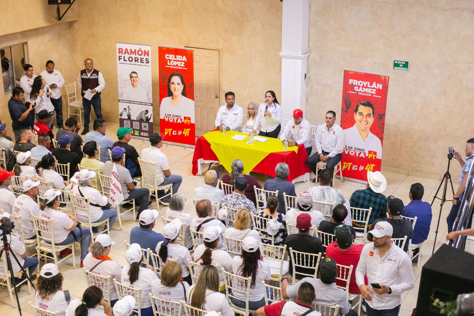 López Cárdenas explicó que encabeza en Sonora la estrategia nacional para impulsar al movimiento y dejar fuera de la partida a quienes buscan regresar el pasado corrupto representado en los candidatos prianistas, como Manlio Fabio Beltrones, por lo que llamó a votar por la fórmula Celida-Froylán.