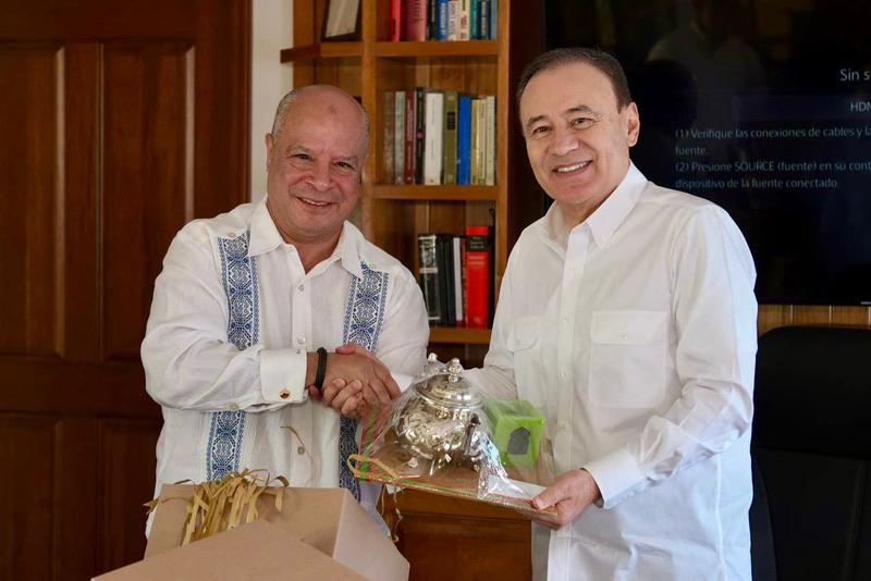 Hermosillo, Sonora; 6 de mayo de 2024.- El gobernador Alfonso Durazo Montaño atendió una reunión de trabajo con Abdelfattah Lebbar, embajador de Marruecos en México, en seguimiento a la visita del cuerpo diplomático acreditado en México que se realizó en 2023 en Puerto Peñasco, donde se abordó la acciones que se llevan en el Plan Sonora.