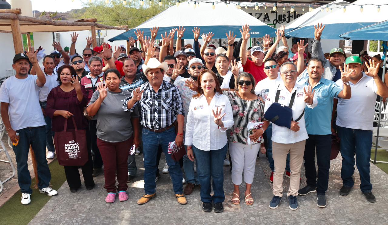 Guaymas, Sonora, 11 de mayo de 2024. Con propuestas solidas de trabajo que harán que continúe el camino de la transformación en Guaymas, este sábado la doctora Karla Córdova González se reunió ante trabajadores de diferentes áreas.