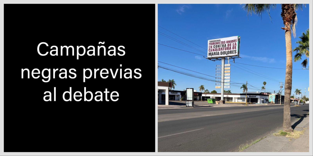 Lo mismo sucedió en Hermosillo, previo al debate de contendientes a la alcaldía de Hermosillo, cuando el equipo de campaña de Antonio Astiazarán la madrugada del viernes para amanecer sábado, montaron un espectacular en la plaza Universidad, por el bulevar Colosio en la colonia centenario que rezaba la siguiente frase: