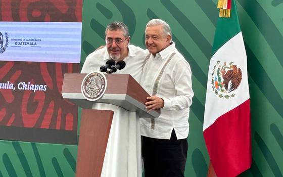 “Nosotros queremos una frontera que una a nuestros pueblos, al pueblo mexicano y al pueblo guatemalteco, una frontera que nos permita desarrollarnos y crecer juntos, con beneficio recíproco, en confianza, con entusiasmo y con colaboración”, afirmó Arévalo.