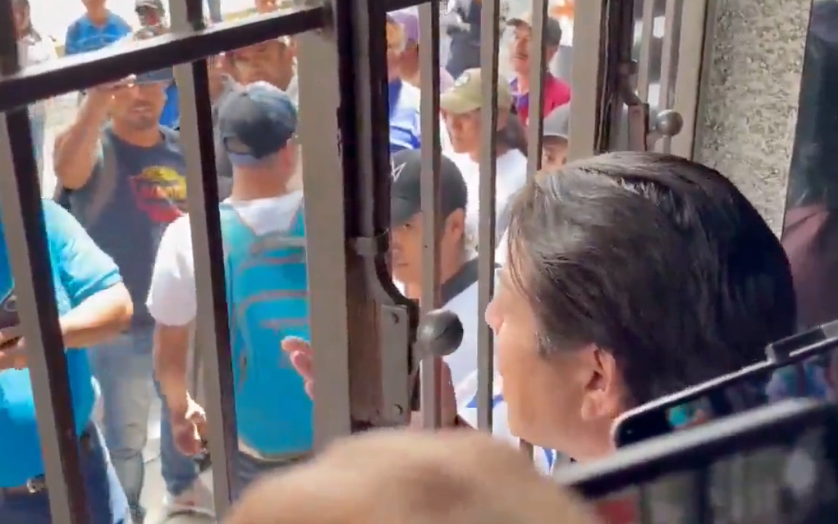 Incluso intentó abrir la puerta, pero fue alcanzado rápidamente por los manifestantes, quienes corearon: “dijeron que todo cambiaría, mentira, mentira, la misma porquería”.