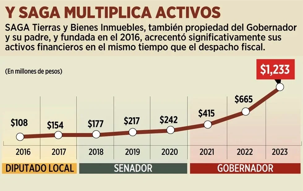 Copias de declaraciones fiscales, a las que Grupo REFORMA tuvo acceso, demuestran que las operaciones de estas empresas fueron creciendo a medida que la trayectoria política de García avanzaba: primero como Diputado local de MC, del 2015 al 2018; luego como Senador, del 2018 al 2021, y finalmente como Gobernador, a partir de octubre del 2021.