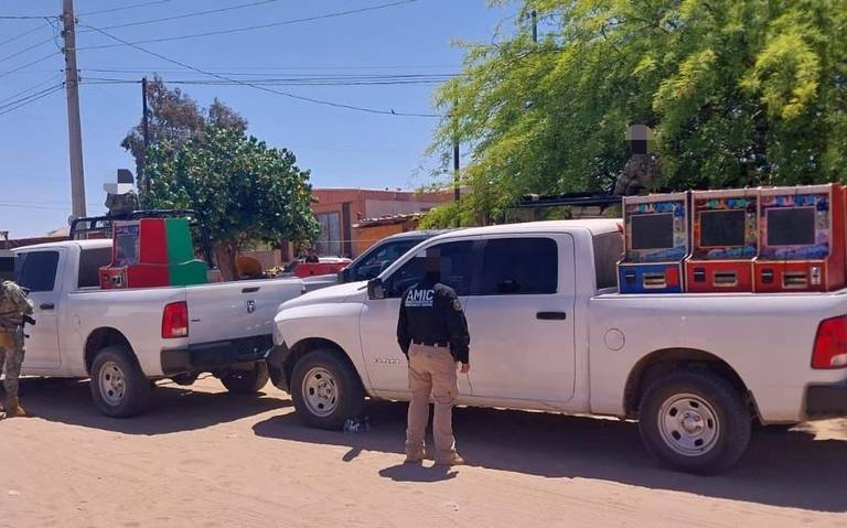 En otro cateo domiciliario a cargo de la Agencia Ministerial de Investigación Criminal y Secretaría de Marina Armada de México en el poblado Golfo de Santa Clara, fueron aseguradas máquinas tragamonedas, dinero y otros indicios.