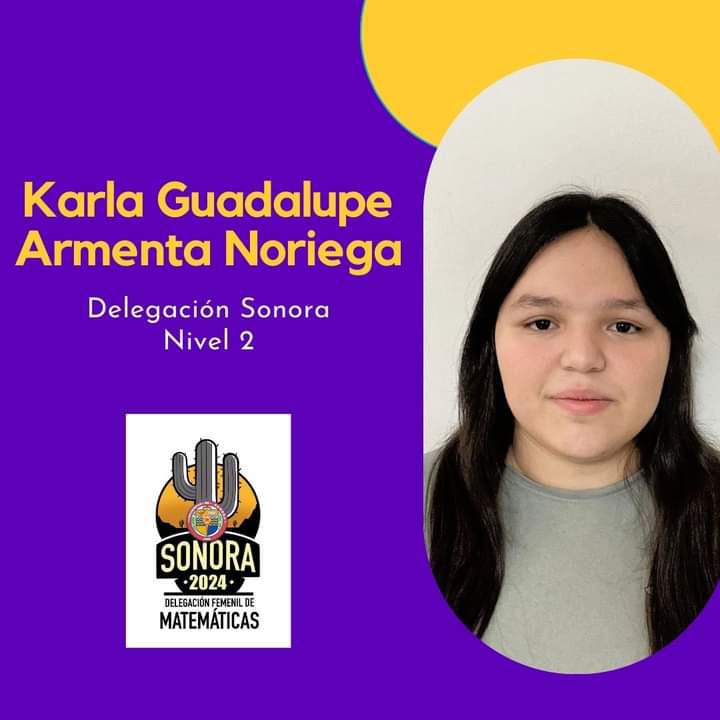 Karla Guadalupe Armenta Noriega, en el 2023 ganó medalla de plata en el Segundo Concurso Nacional Femenil de la Olimpiada Mexicana de Matemáticas en Oaxtepec, Morelos y Ciudad de México.