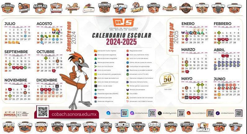 Hermosillo, Sonora; 7 de junio de 2024.- Con un diseño más novedoso y práctico en la programación de las actividades didácticas, el Colegio de Bachilleres del Estado de Sonora (Cobach) dio a conocer el calendario para el ciclo escolar 2024-2025, que establece el inicio de clases el 19 de agosto.