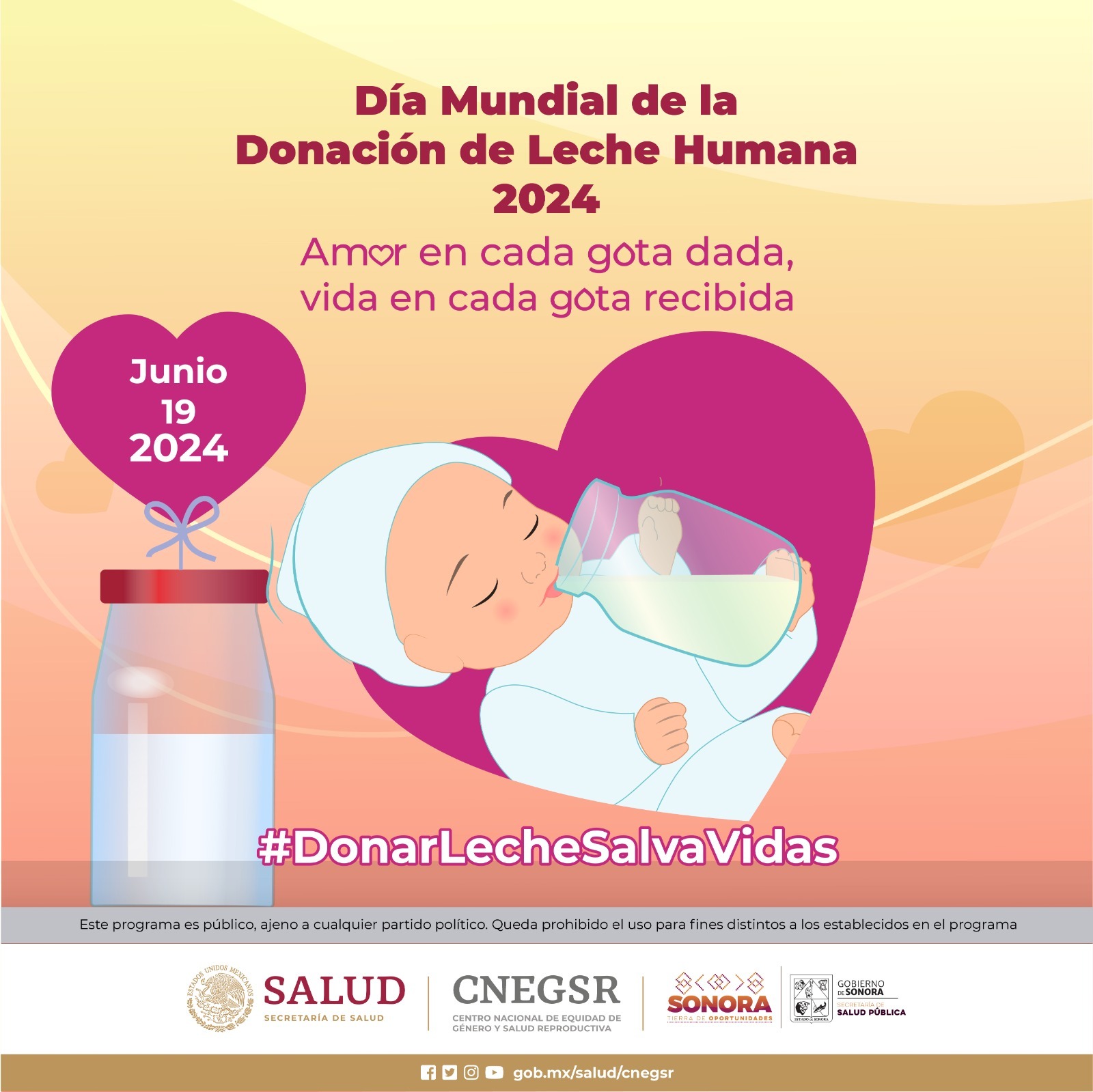 Hermosillo, Sonora, 20 de junio de 2024.- A fin de hacer conciencia sobre la importancia de continuar con la donación de leche materna para que más niñas y niños prematuros puedan mejorar su estado de salud, en el marco del Día Mundial de la Donación de Leche Materna, la Secretaría de Salud de Sonora invitó a la comunidad de madres lactantes a donar en el banco de leche del Hospital Infantil del Estado de Sonora (HIES).