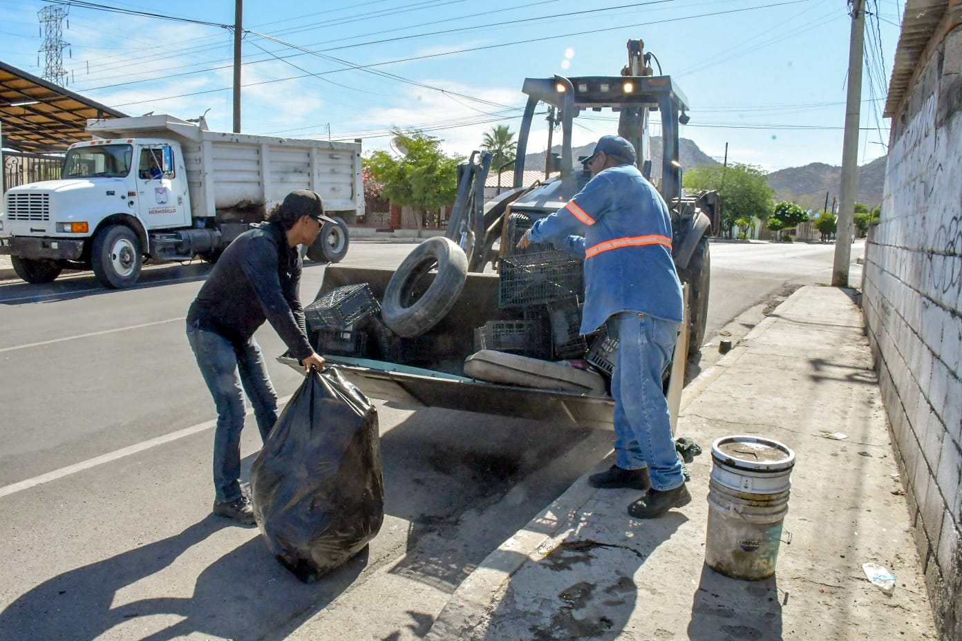 Personal del Ayuntamiento recorrió la zona de Villa de Seris donde previamente se invitó a las vecinas y vecinos a que aprovecharan para sacar a las banquetas su basura no doméstica.