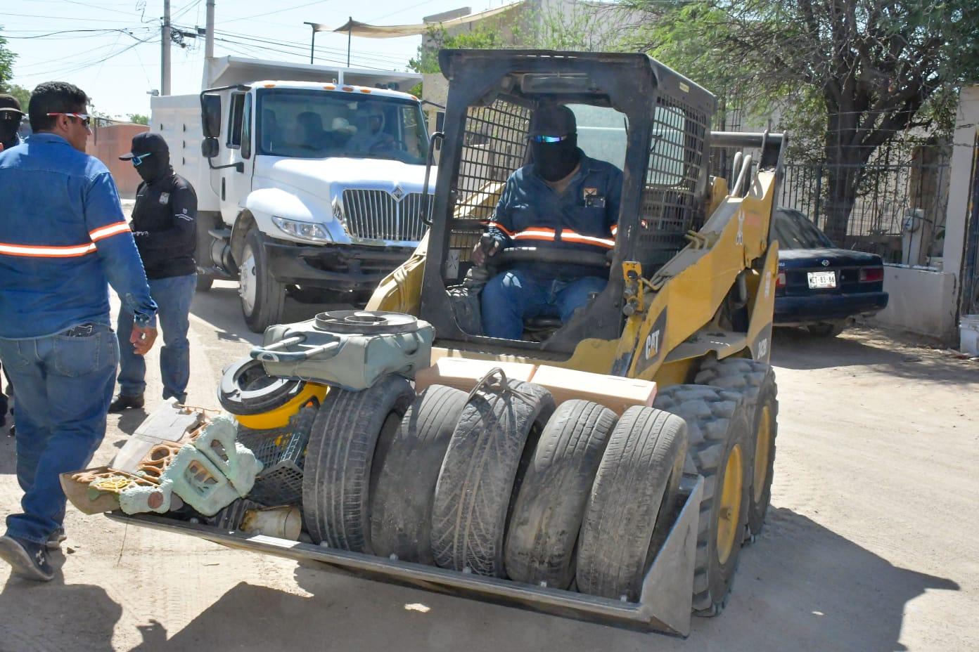 Luis Becerra Hurtado, coordinador de Beneficios del Ayuntamiento de Hermosillo, explicó que estos despliegues forman parte de un programa permanente en el que intervienen varias dependencias municipales que apoyan a la ciudadanía para que se deshaga de cacharros y trebejos acumulados en sus domicilios.