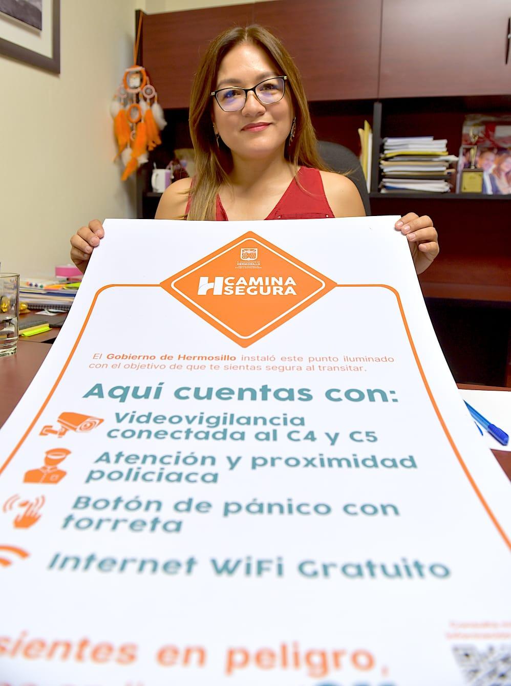 Hermosillo, Sonora; 24 de julio, 2024.- El Ayuntamiento de Hermosillo inició con la instalación de Tótems de Seguridad en las luminarias de los corredores de “Camina Segura” informó Carla Neudert Córdova directora de la Agencia Municipal de Energía y Cambio Climático, AMECC.