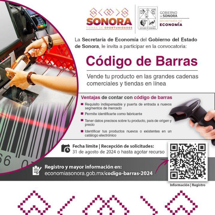 Agregó que la fecha límite para la recepción de solicitudes es el 31 de agosto y se pueden registrar en: https://economiasonora.gob.mx/codigo-de-barras-2024/.