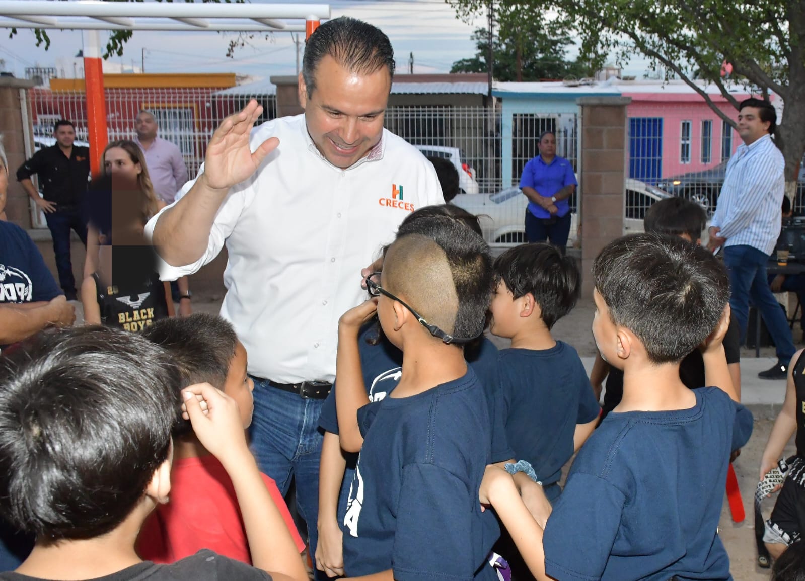 Los acompañaron la señora Elsa Olivia, del Comité CRECES de la colonia Las Palmas; César Rubén Rascón, director de CMCOP; Armando Labrada, director del Instituto del Deporte de Hermosillo; Daniel García, director de Participación Ciudadana; regidoras; y la Selección Sonora Infantil de Tochito U10.