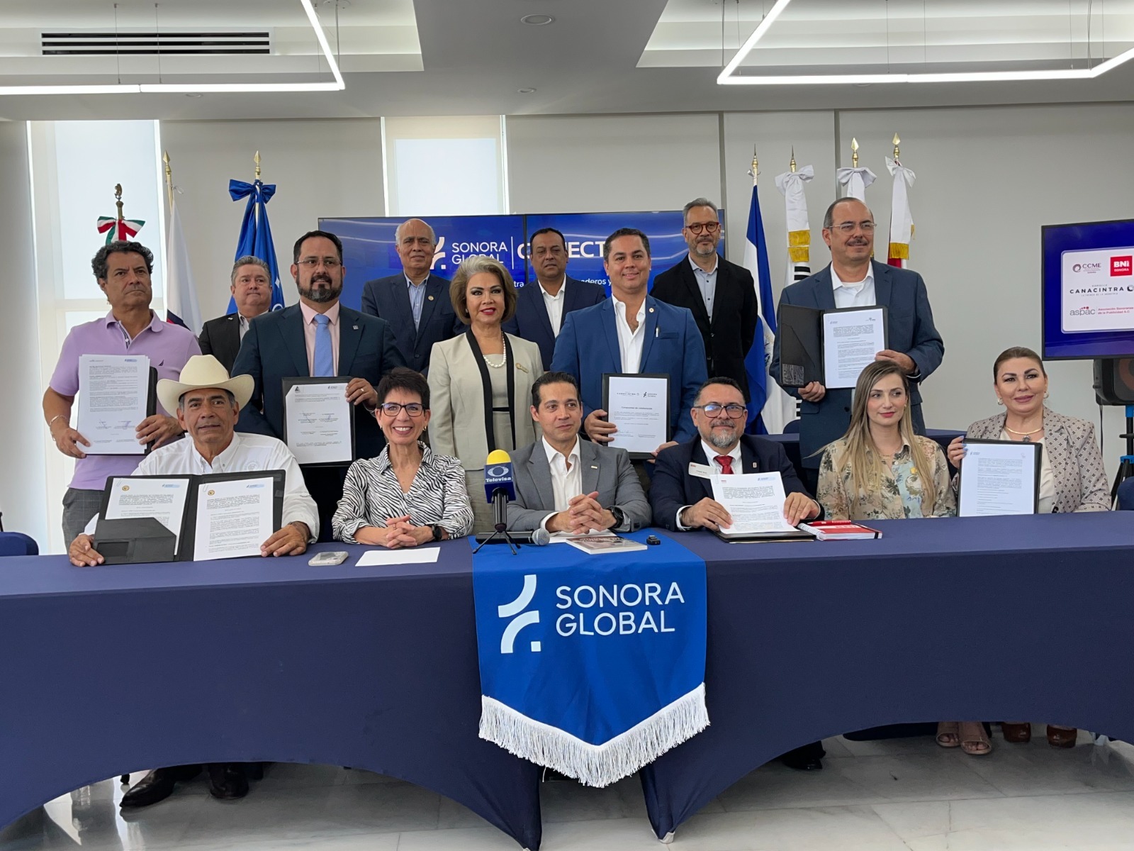 La firma del convenio de colaboración y lanzamiento del Congreso Sonora Global Conecta en entre los siguientes organismos: