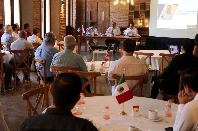 El funcionario del Gobierno de Sonora compartió con los empresarios su experiencia profesional en seguridad pública como policía de carrera, misma que ha desempeñado a nivel nacional e internacional.