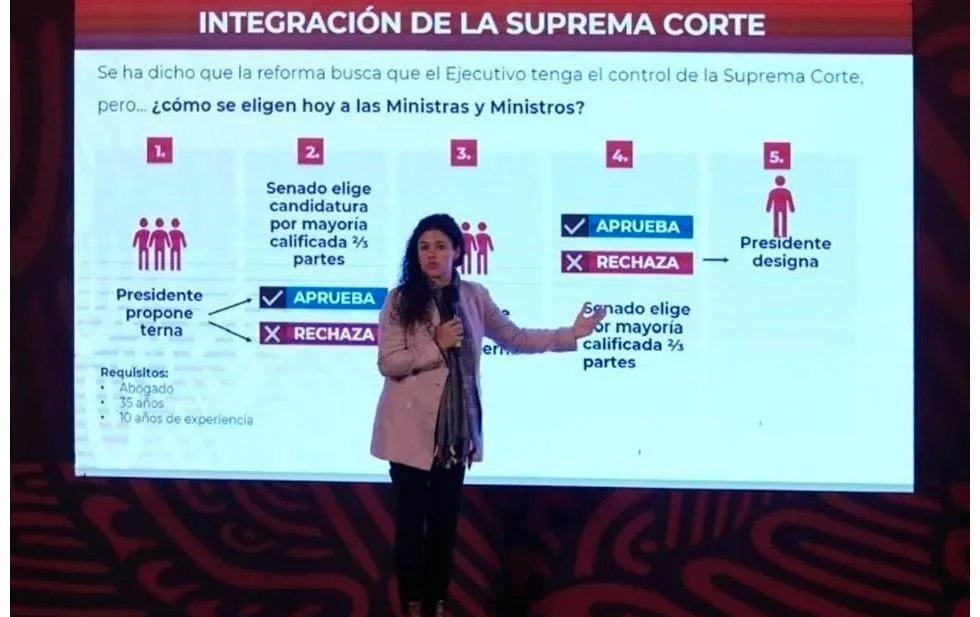 “Si la intención fuese esa, simplemente no será ninguna reforma y se quedarían las cosas como están, pero no es el caso, la reforma que se está planteando es que sea la ciudadanía, la que participe, que el pueblo de México, a través de un proceso democrático, pueda acudir a las urnas para votar, porque quien considere que son los mejores perfiles para ser ministros de la corte, magistrados y jueces”, señaló.