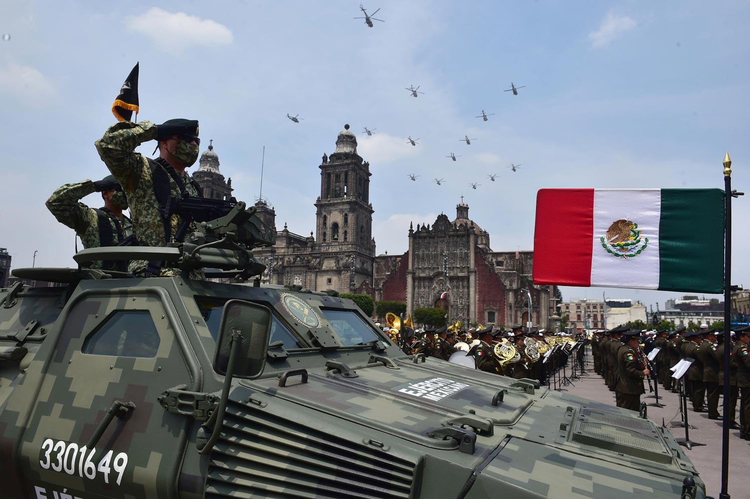 Ante un Zócalo capitalino plagado de soldados, marinos y elementos de la Fuerza Aérea Mexicana y de la Guardia Nacional, los dos mandos castrenses que condujeron ambas instituciones armadas a lo largo de este sexenio, también hicieron los honores al mandatario saliente.