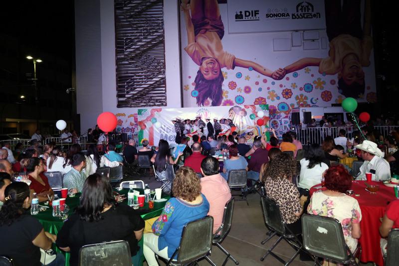 Hermosillo, Sonora; 27 de septiembre de 2024.- Para apoyar a más de 450 niñas y niños de zonas marginadas en los ejidos Sahuímaro, Plan de Ayala y La Peaña, así como de la comunidad triqui en el Poblado Miguel Alemán, el Voluntariado Isssteson, que encabeza Rosa Imelda Ramírez de Osuna, realizó el jueves una Noche Mexicana llena de música, canto y antojitos mexicanos.