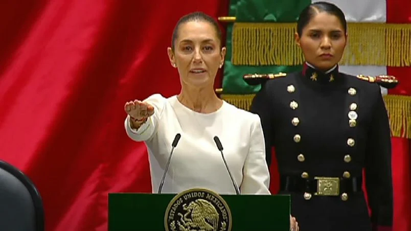 “Protesto guardar y hacer guardar la Constitución Política de los Estados Unidos Mexicanos y las leyes que de ella emanen, y desempeñar leal y patrióticamente el cargo de Presidenta de la República que el pueblo me ha conferido, mirando en todo por el bien y prosperidad de la Unión; y si así no lo hiciere que la Nación me lo demande”, dijo Sheinbaum ante la Cámara de Diputados.
