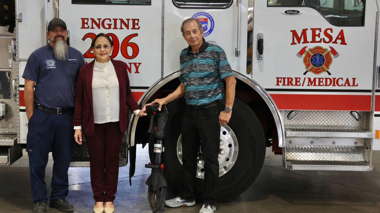 Durante su visita de trabajo en Mesa, Arizona, la doctora Karla Córdova González se reunió con Jerimy Booker, Director de Mantenimiento del departamento de Bomberos de esta ciudad, quien anunció la donación de equipo vital para apoyar a la ciudad hermana de Guaymas.