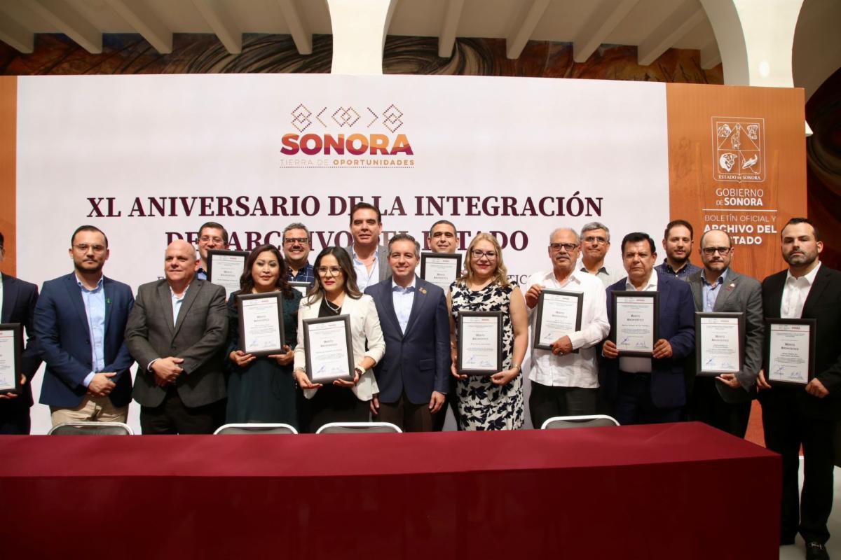 Durante el evento, se entregó un reconocimiento especial a Patricia Ríos García por su destacada trayectoria en el ámbito archivístico. También se otorgaron reconocimientos al mérito archivístico a diversas instituciones y sujetos obligados del estado, entre ellos el Congreso del Estado, la Universidad de Sonora, el Poder Judicial del Estado, Sutspes, la Junta Local de Caminos, SEC, CEDH, CEA, el Colegio de Sonora, la Arquidiócesis de Hermosillo, así como a los municipios de Cajeme, Caborca, Hermosillo y Navojoa.