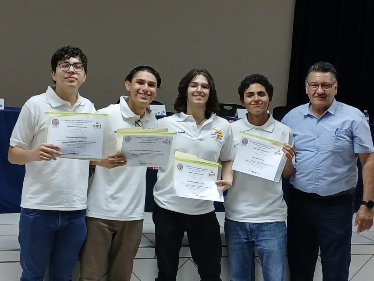 Hermosillo, Sonora; 1 de noviembre de 2024.- Por su alto desempeño y ser los mejores evaluados, los alumnos del Colegio de Bachilleres del Estado de Sonora (Cobach) José Adrián Pentland Celaya, Alán Flores Alanís, José Raymundo Martínez Jiménez y Sebastián Tánori Gallardo resultaron seleccionados para representar a Sonora en la 35 edición de la Olimpiada Nacional de Física.
