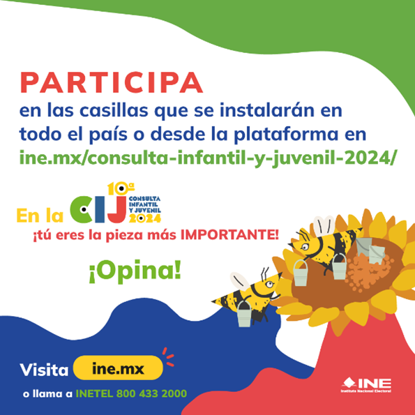 Este 1 de noviembre, el Instituto Nacional Electoral (INE) dio inicio a la Consulta Infantil y Juvenil (CIJ) 2024, la cual convoca a todas las infancias y adolescencias entre 3 y 17 años para ejercer sus derechos a la participación y a la libre expresión, durante todo el mes de noviembre, sobre los temas que les interesan y les afectan directamente en su vida cotidiana.
