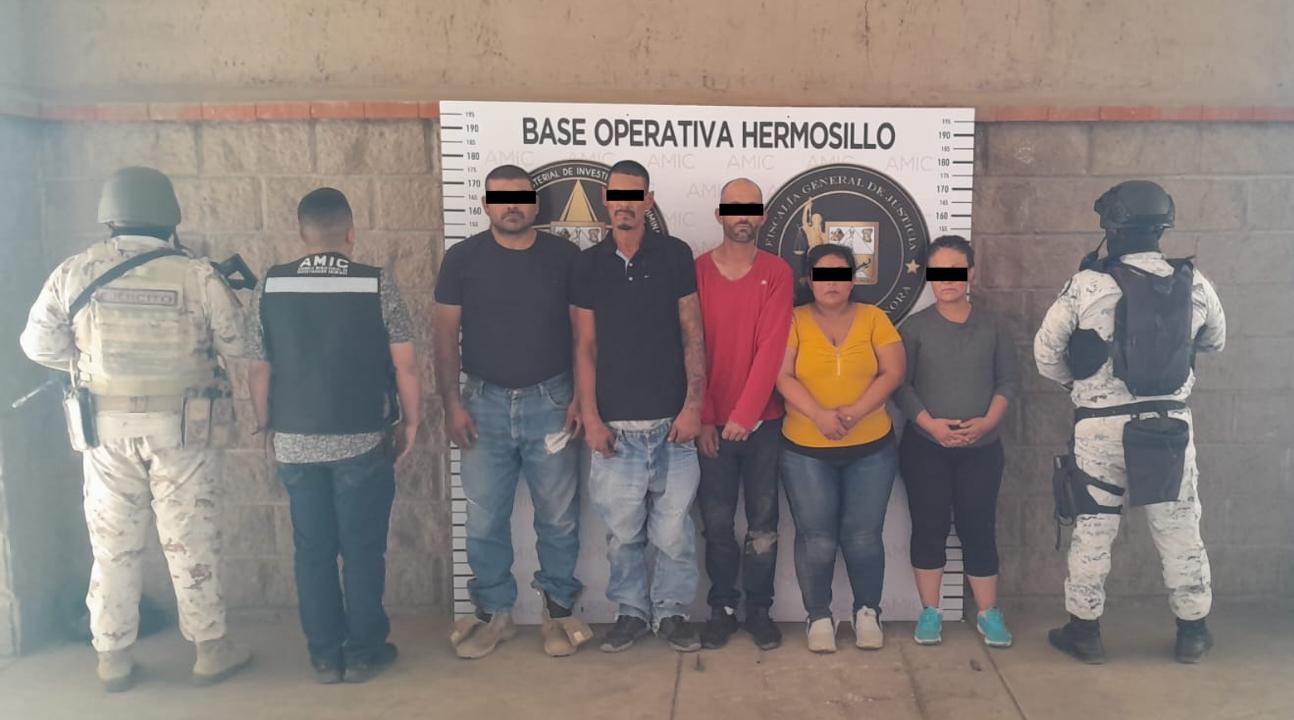 Hermosillo, Sonora, 2 de noviembre de 2024. Un operativo conjunto de la Agencia Ministerial de Investigación Criminal (AMIC), Secretaría de la Defensa Nacional (SEDENA) y Guardia Nacional (GN) ejecutó una orden de cateo en un domicilio de la colonia Tierra Nueva, en Hermosillo, que resultó en la detención de cinco personas y el aseguramiento de droga en el inmueble.