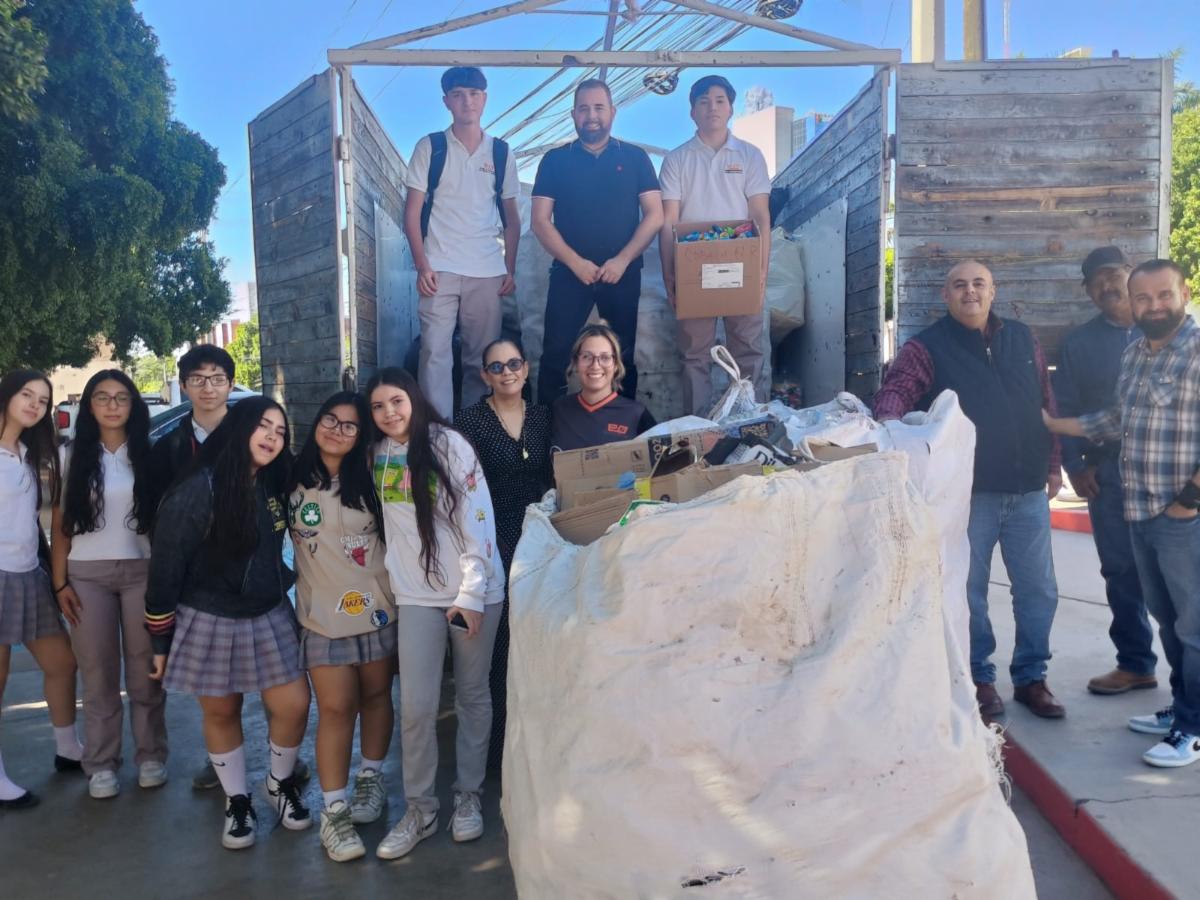 Hermosillo, Sonora; 4 de noviembre de 2024.- El Colegio de Bachilleres del Estado de Sonora (Cobach), a través de la acción coordinada entre sus planteles, llevó a cabo una labor ambiental y social para recolectar dos toneladas de residuos, material PET, tapitas y cartón, en apoyo a niños con cáncer y lupus, en el marco del Día Mundial de la Ecología.