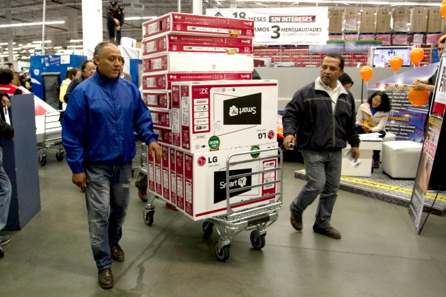 MÉXICO, D.F., 14NOVIEMBRE2014.- Cientos de personas acudieron a las tiendas para realizar compras en su mayoria electrodomesticos y pantallas durante el inicio de la campaña comercial “Buen Fin” que comenzo apartir de las cero horas del 14 y hasta el 17 de noviembre en diverzas cadenas comerciales. FOTO: GUILLERMO PEREA /CUARTOCURO.COM
