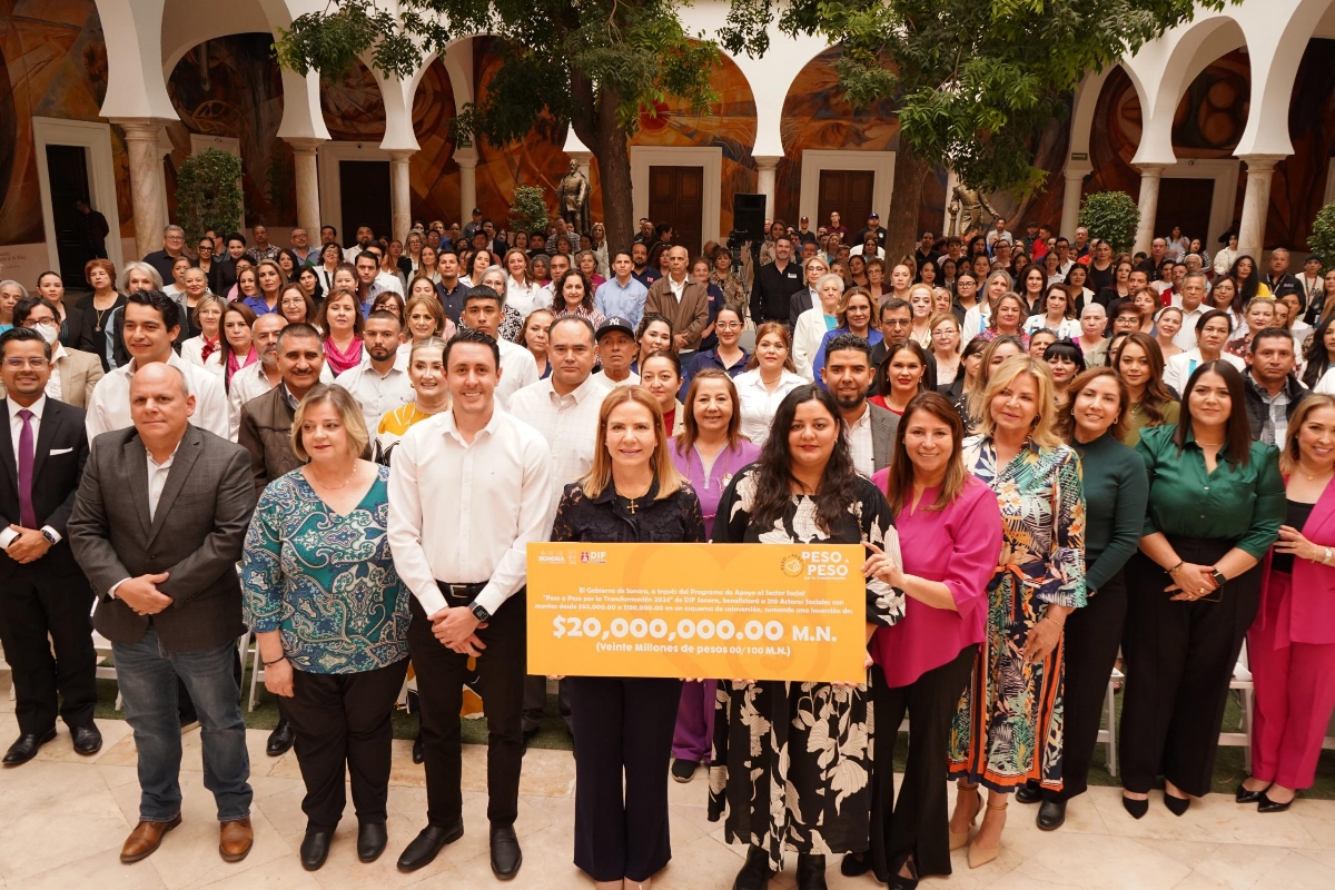 Hermosillo, Sonora; 6 de noviembre de 2024.- El Gobierno de Sonora, a través del Sistema para el Desarrollo Integral de la Familia (DIF Sonora), realizó la entrega de 20 millones de pesos en apoyos del programa Peso a Peso por la Transformación, a quienes trabajan a favor de las personas en situación de vulnerabilidad que viven o transitan por Sonora.