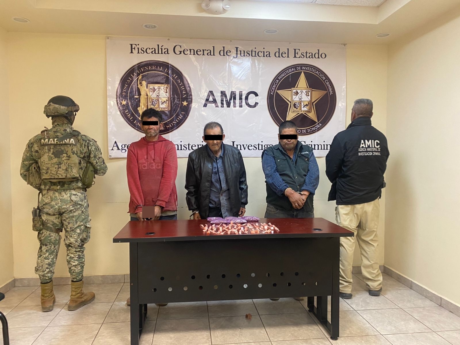 San Luis Río Colorado, Sonora, 22 de noviembre de 2024.- En acciones coordinadas para combatir delitos que afectan la seguridad y tranquilidad de la ciudadanía, la Agencia Ministerial de Investigación Criminal (AMIC) y la Secretaría de Marina Armada de México (SEMAR) efectuaron un cateo exitoso que resultó en la detención de tres sujetos y el aseguramiento de narcóticos.