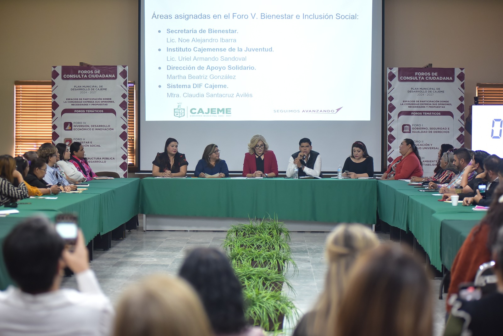 En el V foro, Bienestar e Inclusión Social, las propuestas fueron la formación de un Comité Juvenil del Ayuntamiento de Cajeme, con el objetivo de formar Jóvenes dispuestos a trabajar juntos por el bienestar y el desarrollo, apoyo social, actividades recreativas, apoyo emocional y cercanía con las personas de Cajeme.