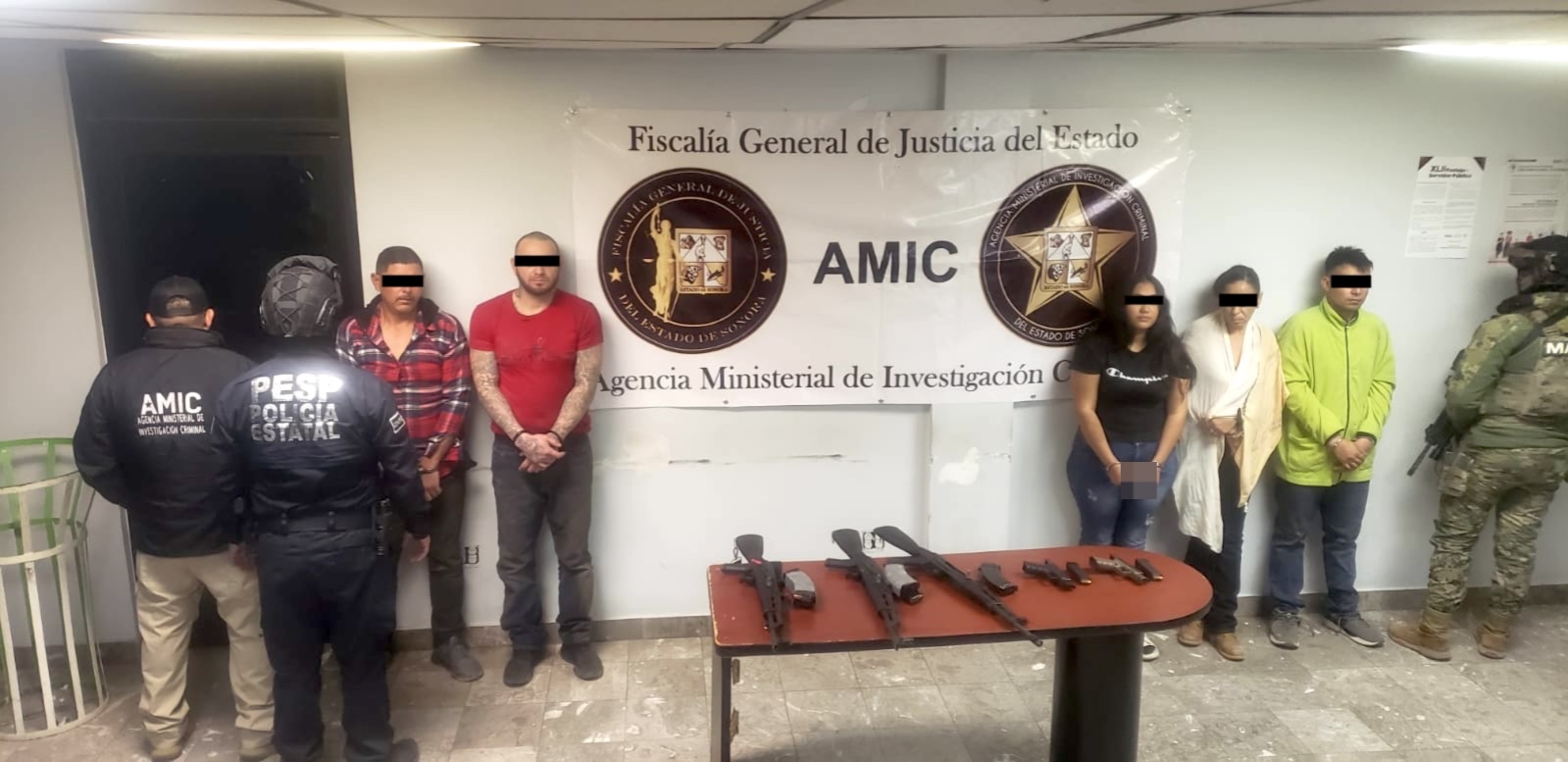 Dentro del domicilio se logró la captura de Carlos Adolfo “N”, alias “El Pingüi”, de 21 años, Marco Antonio “N”, de 47 años, Alaníss “N”, alias “La Ñoña”, de 19 años, Luis Ángel “N”, de 30 años y Milagros “N”, de 44 años, quienes manifestaron pertenecer a un grupo delincuencial que opera en la zona, asegurando además tres fusiles AK-47 y dos armas cortas calibre .40.