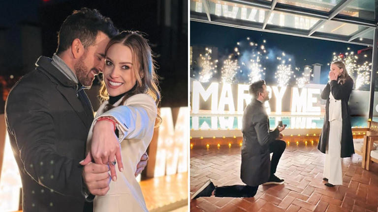 En las imágenes que compartieron, se puede ver al también cantante de rodillas frente a su futura esposa, mientras pirotecnia estallaba a sus espaldas junto a un gran letrero con la frase “Marry Me (Cásate conmigo)”.