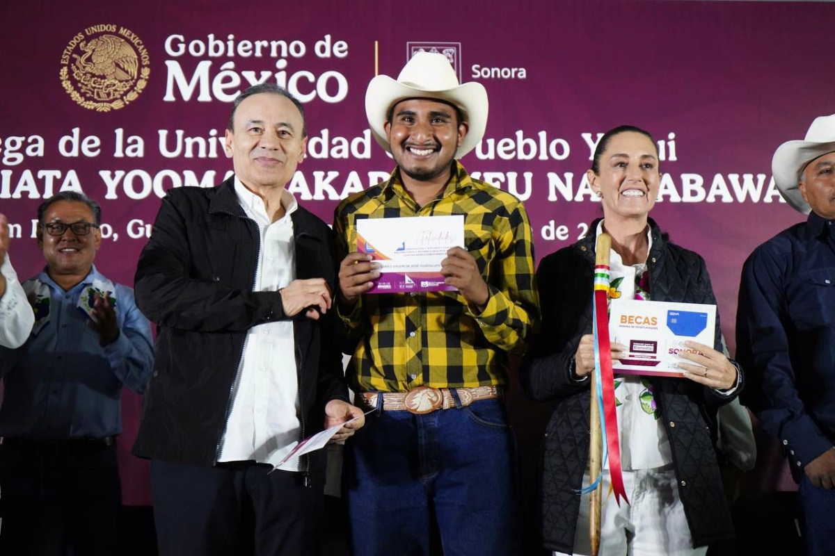 “Vamos a apoyar con todo a esta universidad del pueblo yaqui a seguir ampliándola y dándole todos los recursos que necesite. Así como la universidad del Pueblo Yaqui, en todo Sonora y en todo el pais, Mario que es el secretario de Educación tiene la instrucción de seguir encontrando espacios para que los jóvenes tengan la posibilidad de estudiar la preparatoria y la universidad, que puedan desarrollarse como quieran desarrollarse y hacer realidad el derecho a la educación”, sentenció.