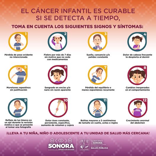 Por ello, la Secretaría de Salud en Sonora (SSP) cuenta con el programa de Cáncer en la Infancia y la Adolescencia, el cual tiene como objetivo disminuir la mortalidad e incrementar la sobrevida en niñas, niños y adolescentes a través de la detección de signos y síntomas de sospecha de cáncer, y un diagnóstico temprano y oportuno, que permita referir a tiempo a las y los pacientes a la atención que requieran.