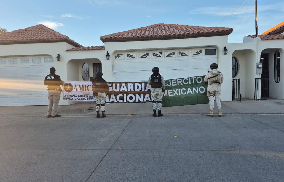 Fue a las 9:00 horas cuando el personal de la GN destacamentado en dicha localidad, en conjunto con el elementos castrenses y de la Fiscalía del Estado y la República, cumplimientaron una orden técnica de investigación en el inmueble 1290, de la calle Constitución, Colonia Papagos, donde fue decomisado lo siguiente.